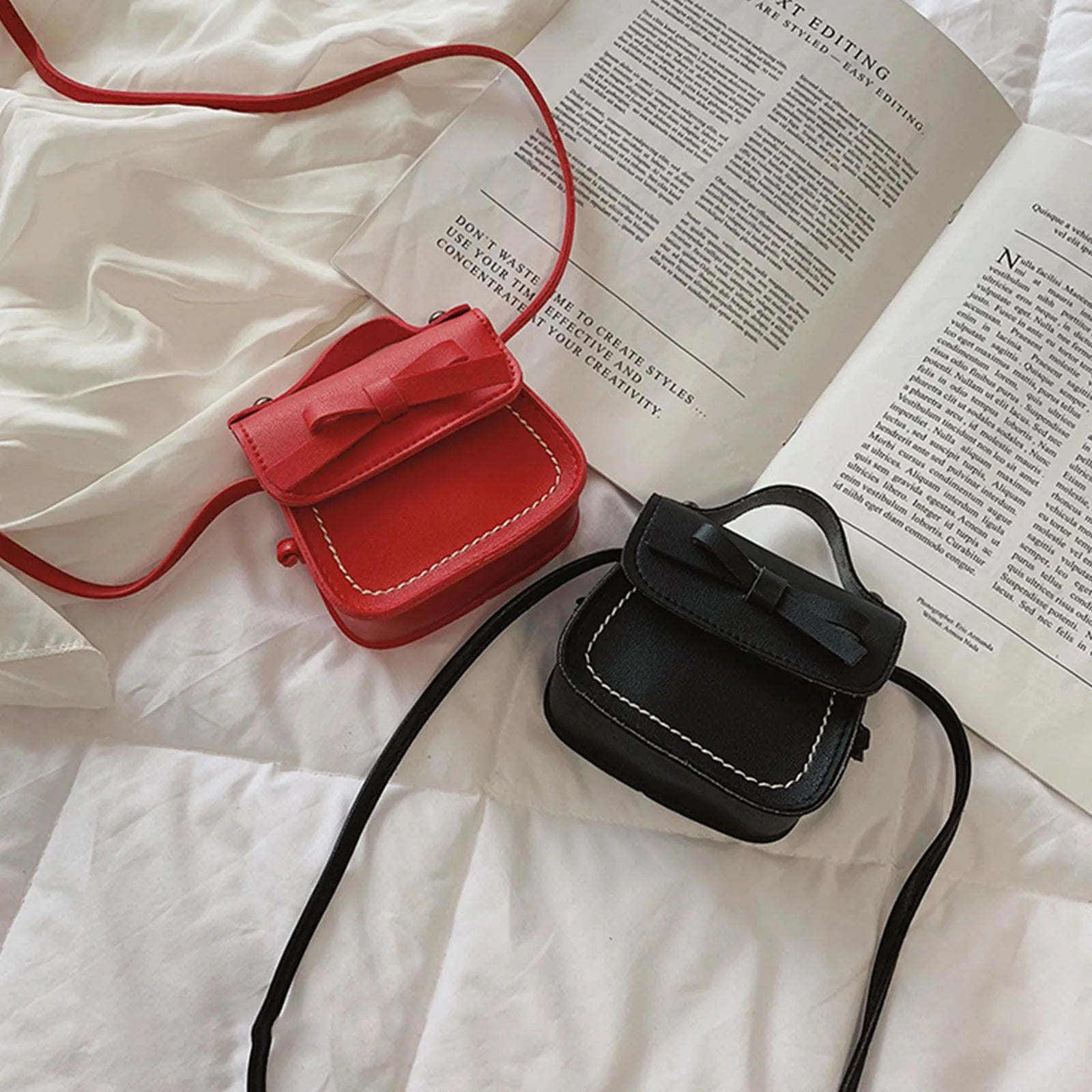 Cute Leather Girl Messenger Bags Sweet Cool Style Matching Shoulder Bag Solid Bowknot Crossbody Coin Purses For Gift